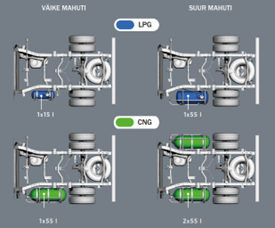 Savivarčio dėžių plotis yra 1680 mm arba 1800 mm, priklausomai nuo to, ar ant galinės ašies naudojami pavieniai, ar dvigubi ratai.